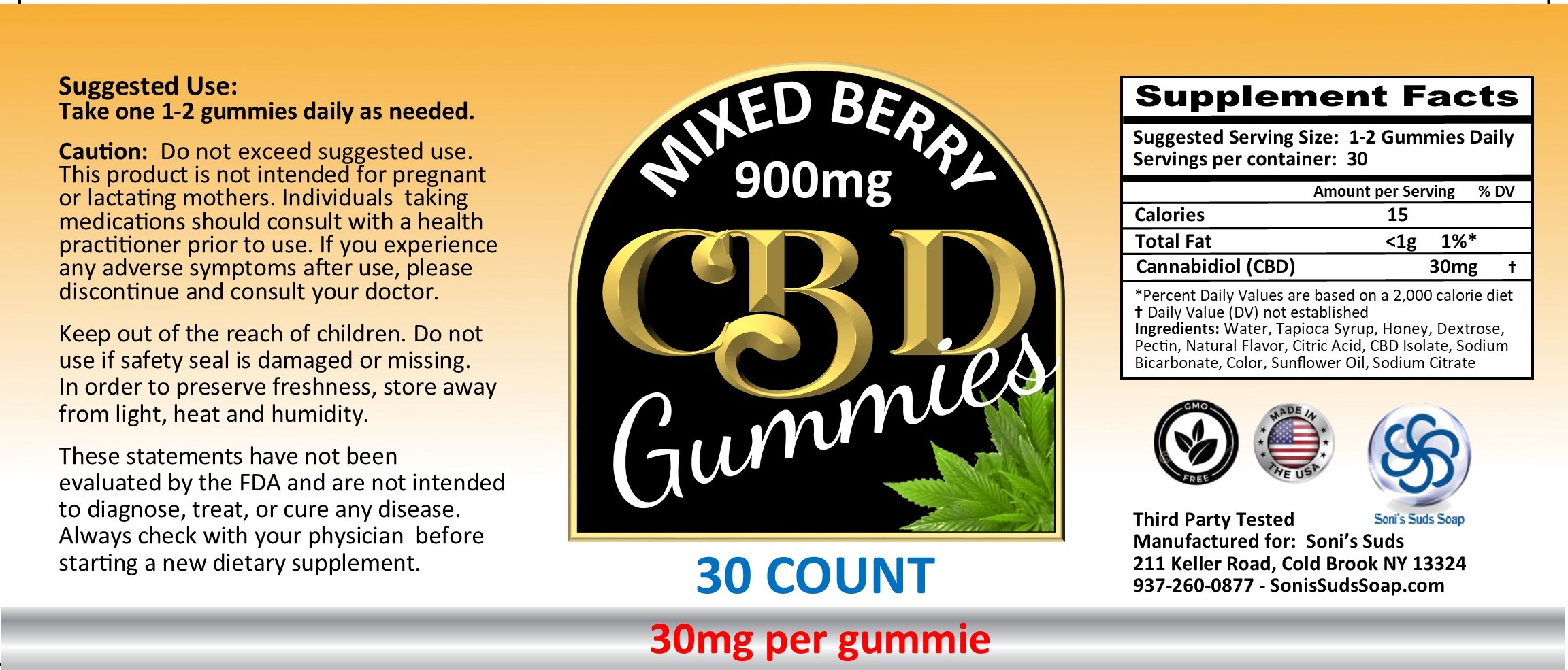 CBD full spectrum 30 mg softgels. 30 mg per capsule/900 mg per bottle. May be used for pain, sleeplessness, and other issues.